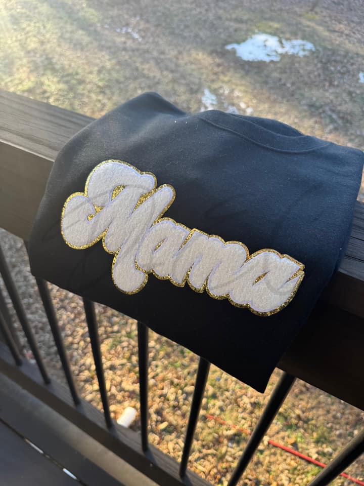 MAMA white & gold-Completed Embroidery Patch Sweatshirt